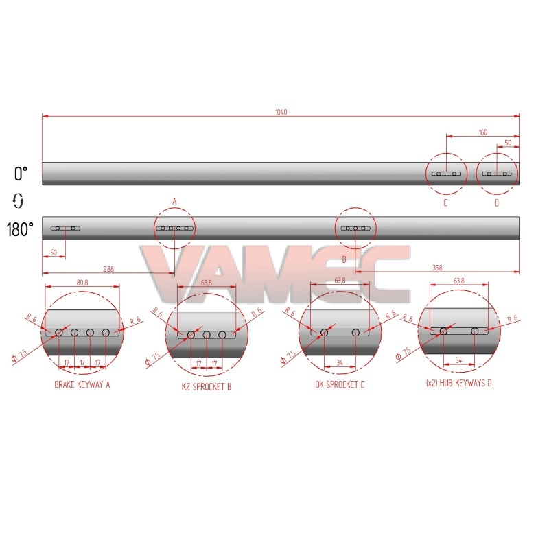 Assale universale per kart, a 5 chiavette, adatto sia a kart KZ sia a kart OK.
