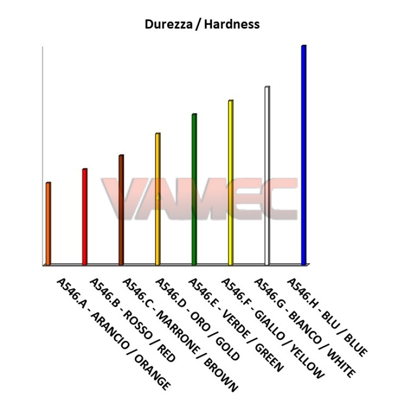 Disponibile in 8 diverse durezze, come da tabella allegata: